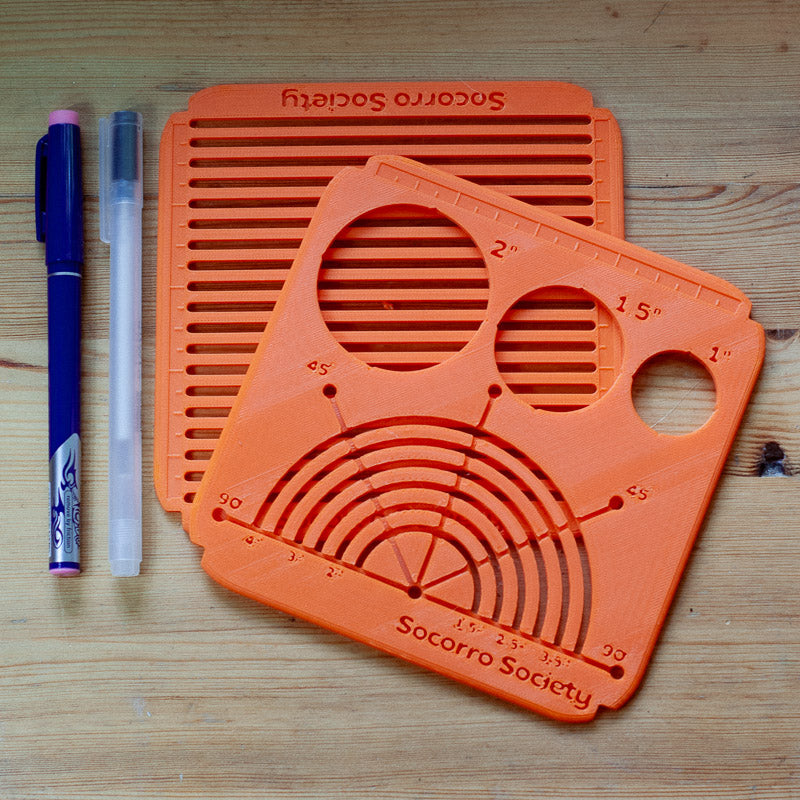 Uanset om du broderer til pynt eller for at reparere dit tøj, kan du hurtigt og enkelt tegne mønstre med gitre, cirkler og halvcirkler. Slip for besværet med at måle op i hånden – med disse stencils kan du skabe alle de designs du vil, uden vlies eller besværlig overførsel.